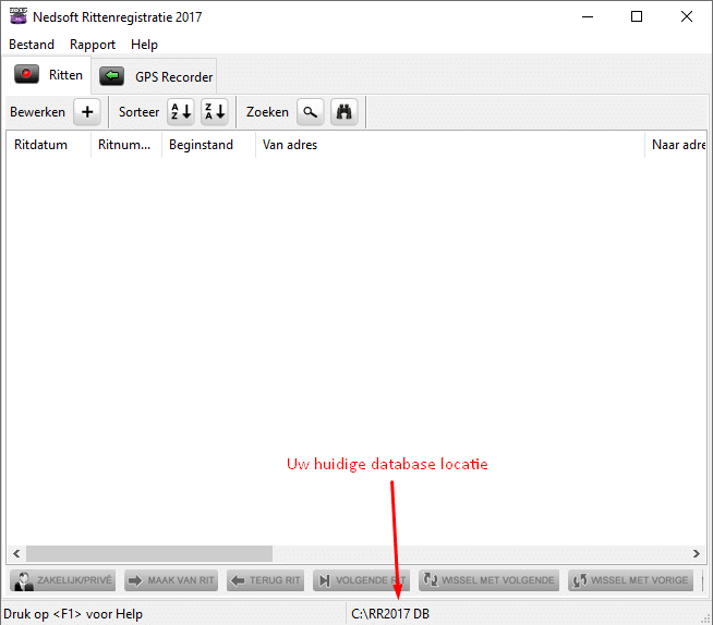 • Nadat de installatie is voltooid, opent u het programma “Nedsoft RittenRegistratie GBF”