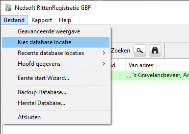 • Na het opstarten klikt u op: Bestand > Kies Database locatie