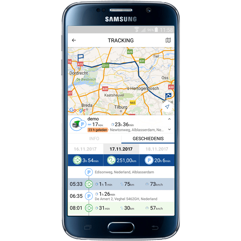 Live volgen van bedrijfswagens in heel Europa via het portaal of de app.