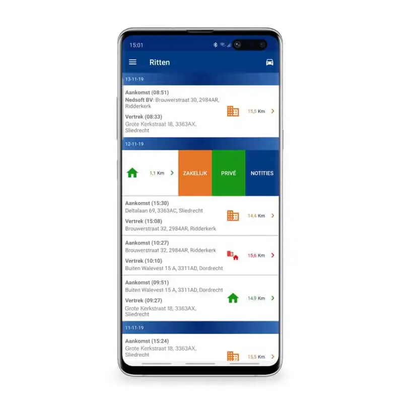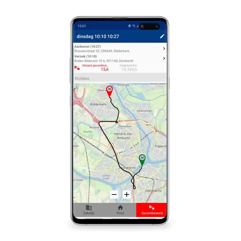 Je rit als zakelijk of privé markeren? Met één swipe heb je dit direct geregeld. Belangrijke details van jouw ritten hoeft je niet langer te onthouden. Je voegt namelijk eenvoudig een notitie toe aan een gereden rit. Al je ritten worden getoond op de routekaart, zodat je ze altijd kunt controleren.