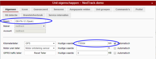 Om uw kilometerstand of voertuig naam te wijzigen klikt u op het icoon met het steeksleuteltje. Aangeduid op de afbeelding hieronder.